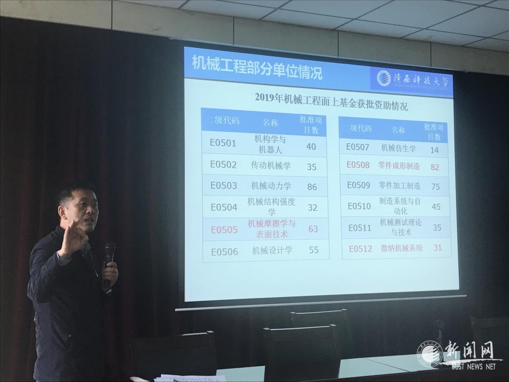 2019年10月23日下午,机电工程学院召开2020年国家自然科学基金申报工作持续推进大会,会议由副院长杨立军主持,学院领导班子及教职工参加了本次会议。