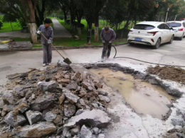 十三公寓跑水抢修、七公寓外暖气跑水点管道焊接机电学院楼下管道维修、 十三公寓跑水抢修