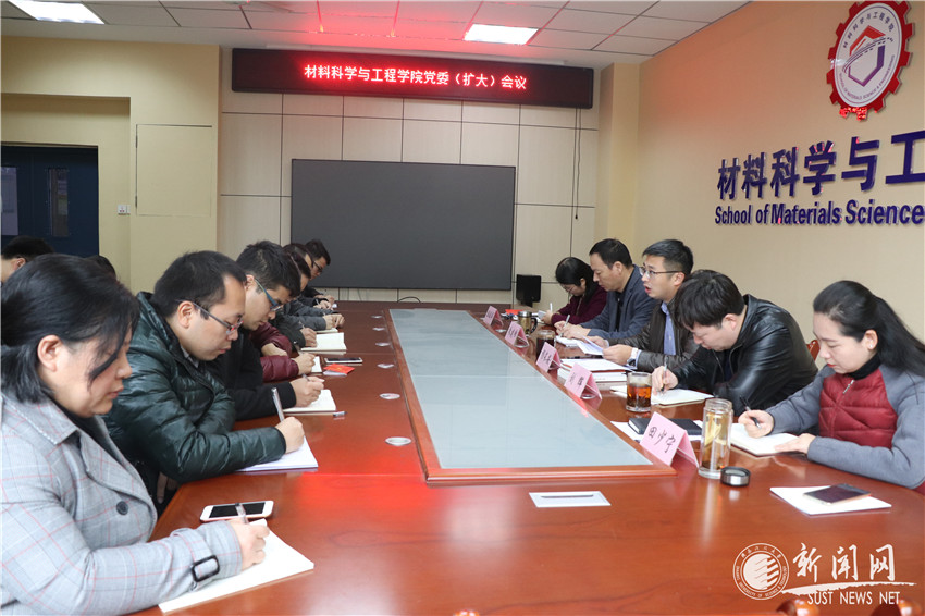近日,材料科学与工程学院党委召开扩大会议,传达学习党的十九届四中全会精神,对学院的宣传贯彻工作进行安排。学院党委副书记杨长安主持会议,党委委员、院领导、各党支部书记参加会议。